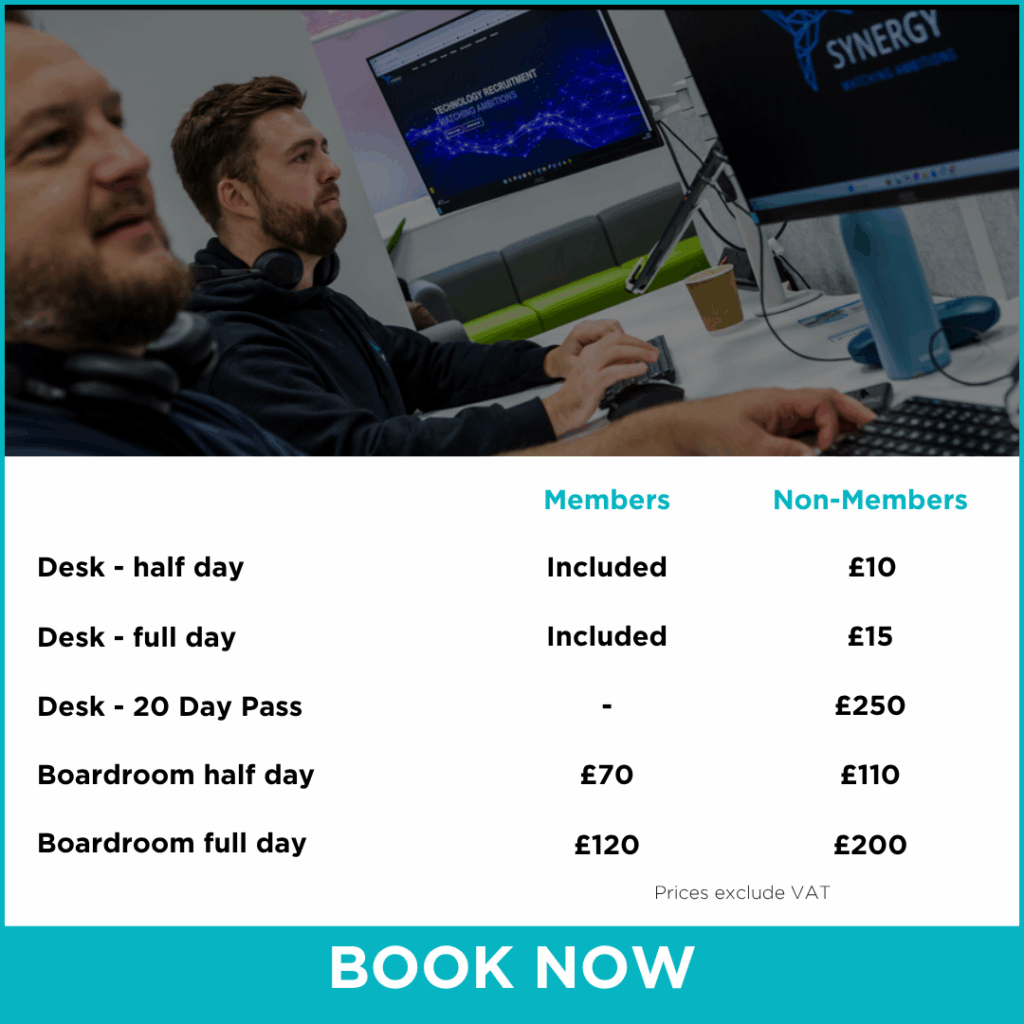 Non-members are welcome to book desks and meeting pods at competitive rates (desk hire from £15 a day). Boardroom hire remains a paid service for both members and non-members.